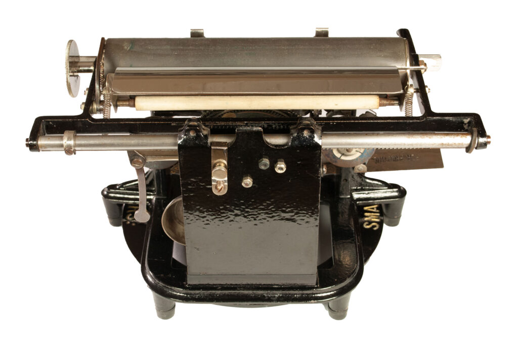 Buoyed by the success of the Mimeograph, Dick turned his attention to designing a typewriter that would exploit his improved stencil technology. With these stencils, a typewriter’s typebars could penetrate the wax coating without tearing the stencil itself, making it possible to create multiple copies from typed originals using a mimeograph, rotary printer, or printing press.